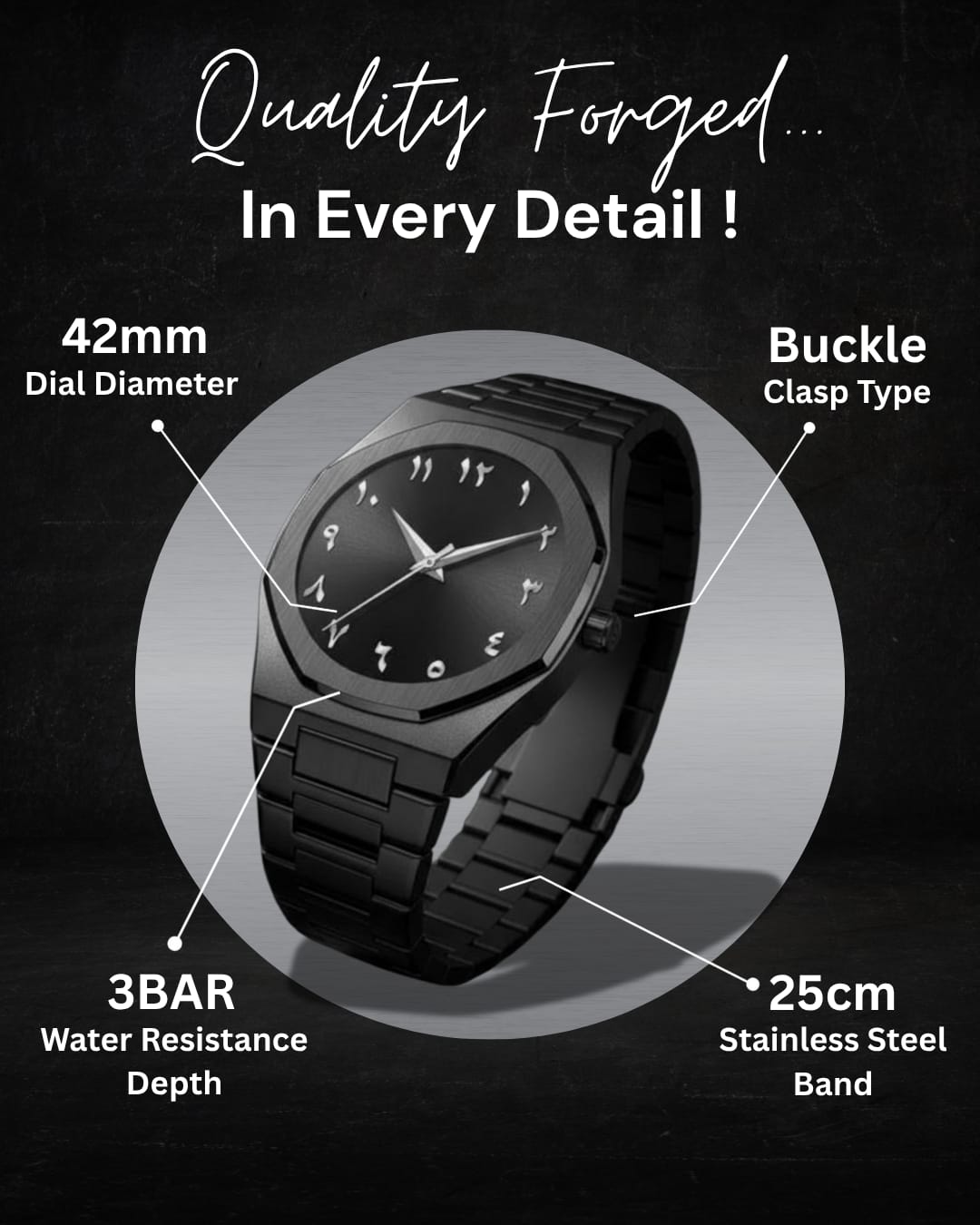 Our Statement Collection is here to do all the talking for you. Upgraded to Swiss Battery Movement and maintaining our scratch-resistant Sapphire Crystal Glass, no corners were cut in the making of this watch. Featuring unique Arabic numerals along the dial of the watch, this piece is going to make a statement before you can say a word.
